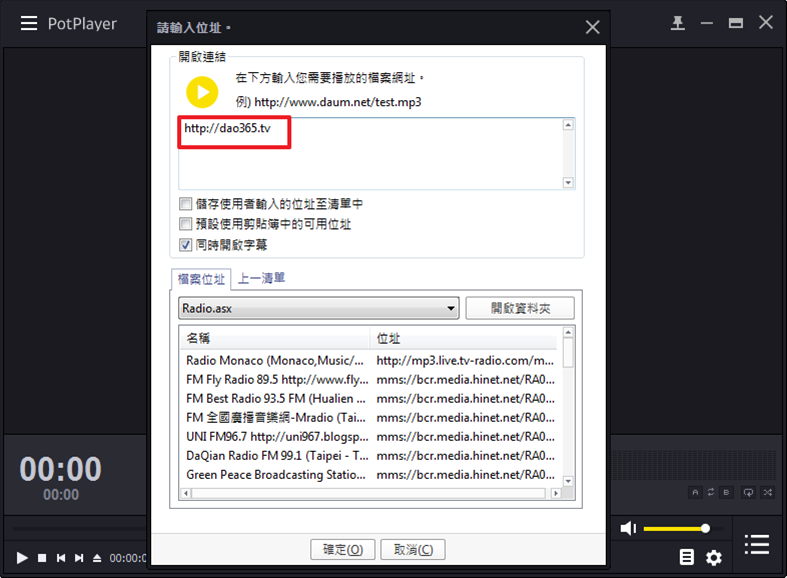 - 輸入串流網址「http://dao365.tv」