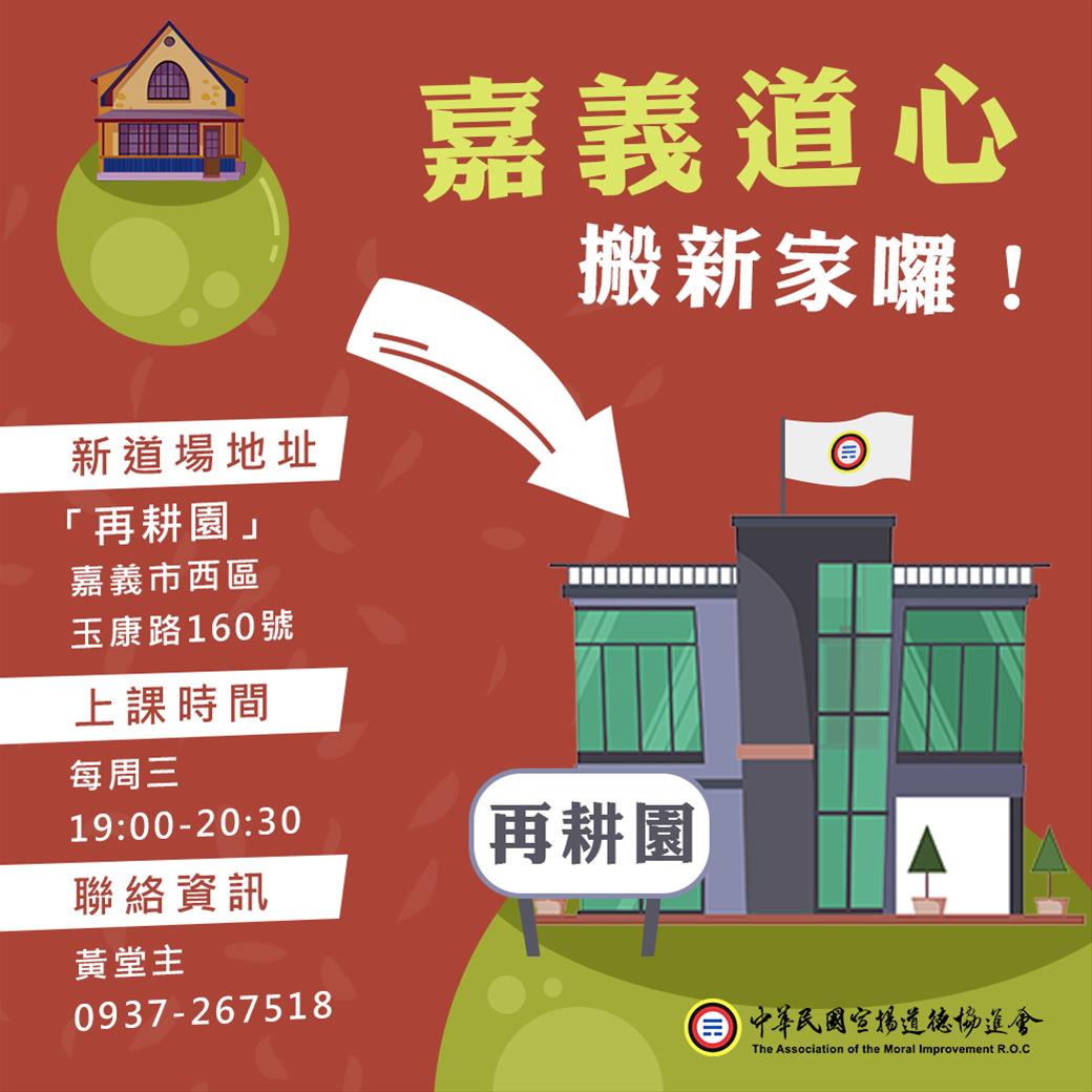 【講演中心公告】嘉義道心搬家囉~