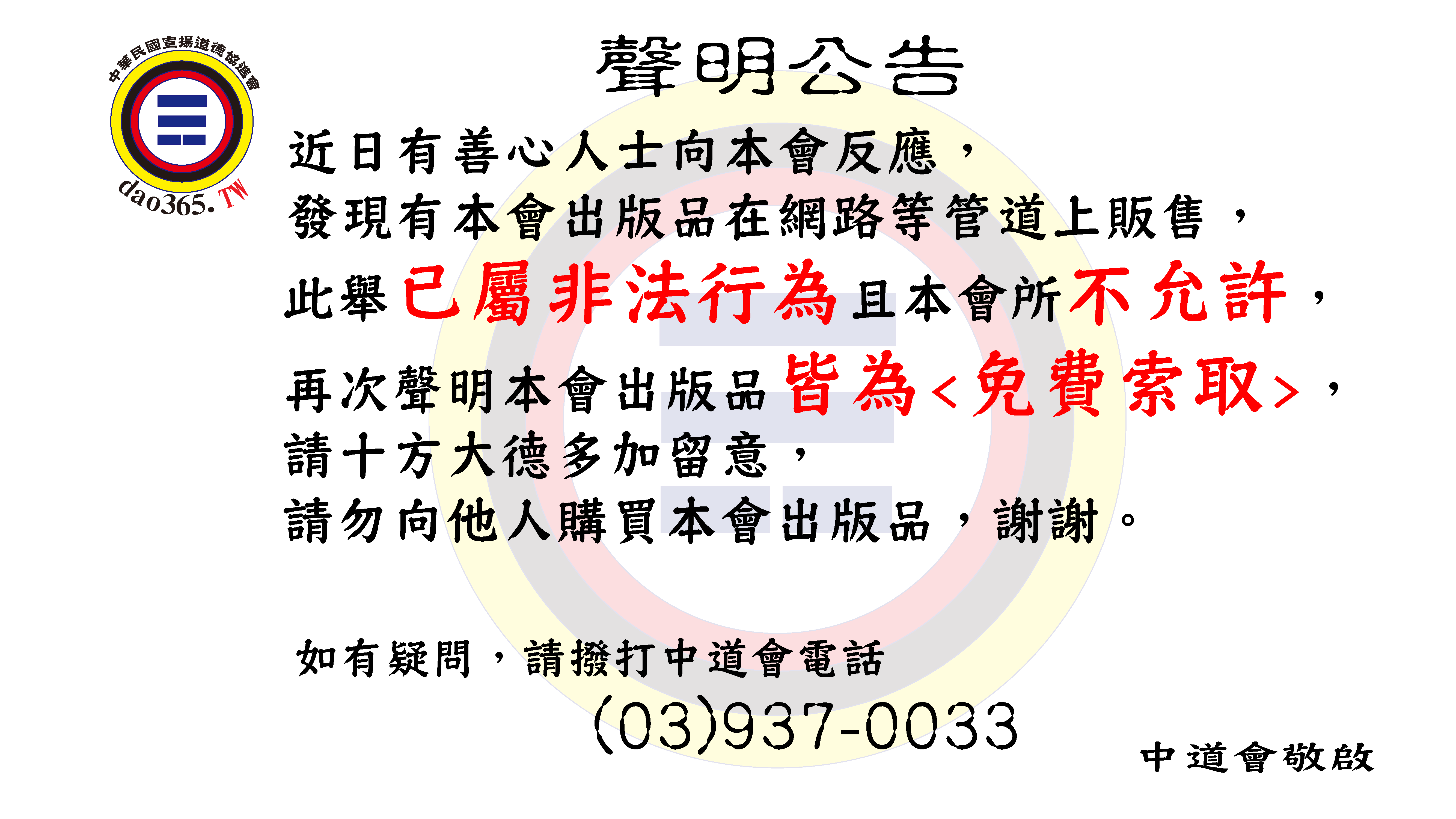 [ 重要公告 ] 本會所有出版品皆為 ***免費索取***,請勿花錢購買,謝謝。