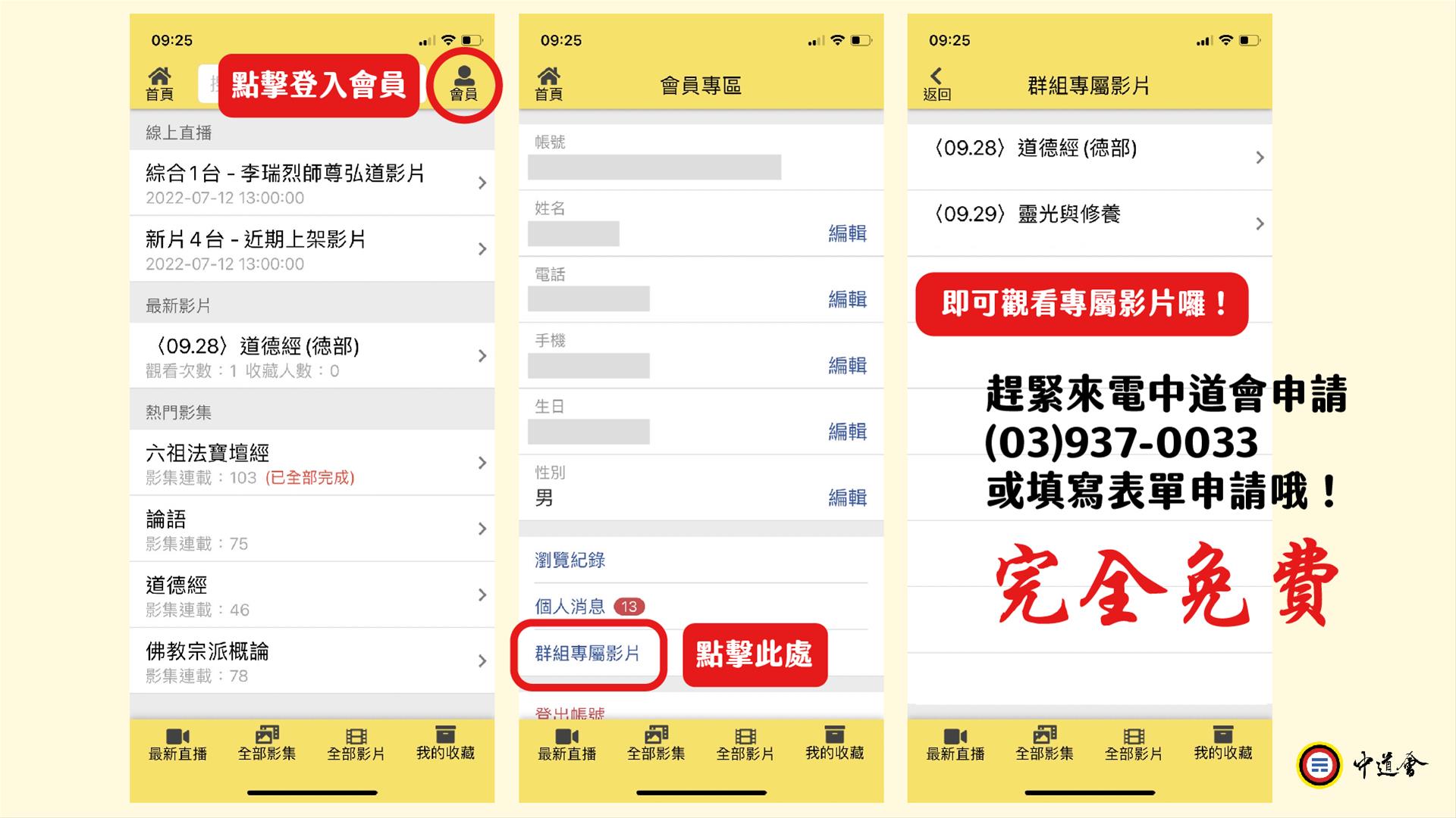 1️⃣免費加入中道會官網、app會員👉