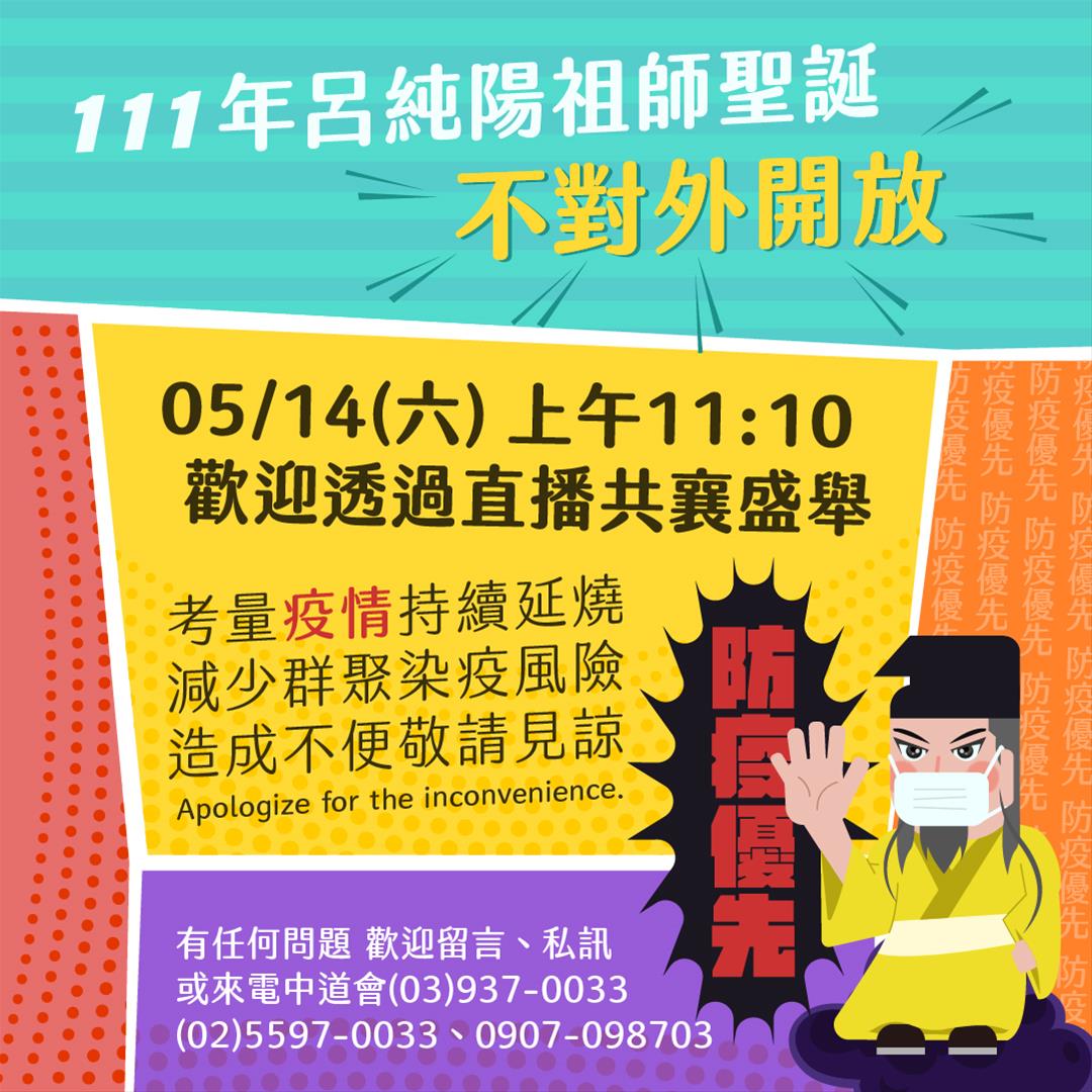 111年呂純陽祖師聖誕活動『取消對外開放』