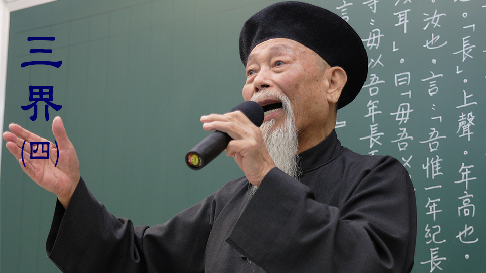 一般解釋三界,大多引用俱舍論的內容:以欲界、色界、無色界,尚未了脫生死,所以還在生死火宅之中。實則三界還有其他說法,上述只是其中一種,應廣徵經論,以免拘泥一說。修真錄舉出諸家四種解說:一、天地水為之三界;二、天地人為三界;三、禪定亦分三界;四、十法界分為三界。